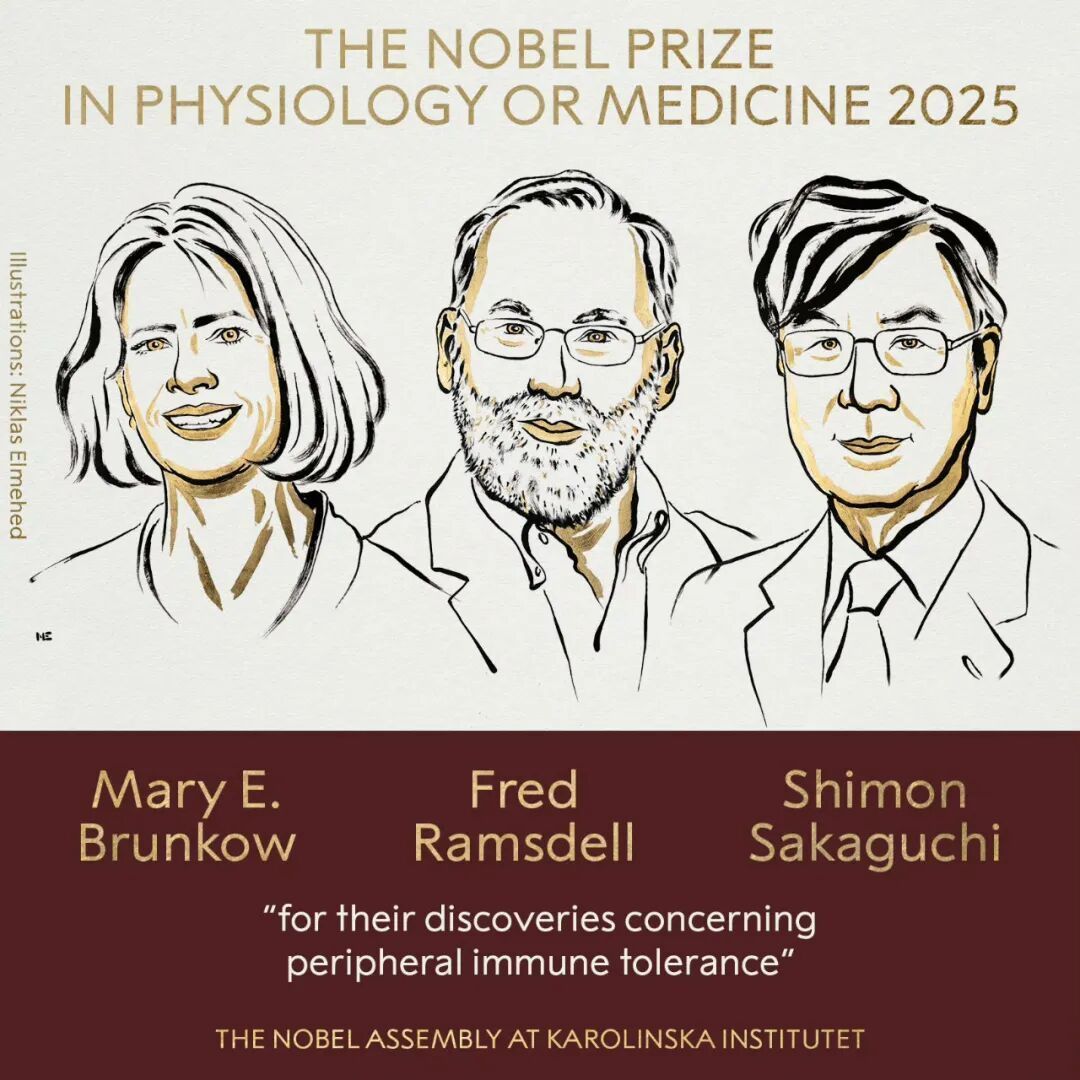 当地时间10月6日,瑞典卡罗琳医学院宣布,将2025年诺贝尔生理学或医学奖授予科学家玛丽·E·布伦科(Mary E. Brunkow)、弗雷德·拉姆斯德尔(Fred Ramsdell)和坂口志文(Shimon Sakaguchi)金牛所,表彰他们在外周免疫耐受方面的研究贡献。