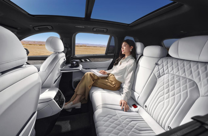 内饰部分则更显高级。全新的日光米配色搭配Nappa真皮与木纹装饰板,营造出温馨又精致的氛围。二排座椅宽度1366mm、坐垫深540mm、腿部空间最大1130mm,并具备通风、加热、8点按摩与多功能中央扶手。支持小桌板及双“沙发床”、2米大床模式的设计,让车内空间在通勤、露营、休息之间自由切换。前排则配备电动腿托、方向盘记忆及加热等功能,为驾驶与乘坐者提供全方位舒适体验。