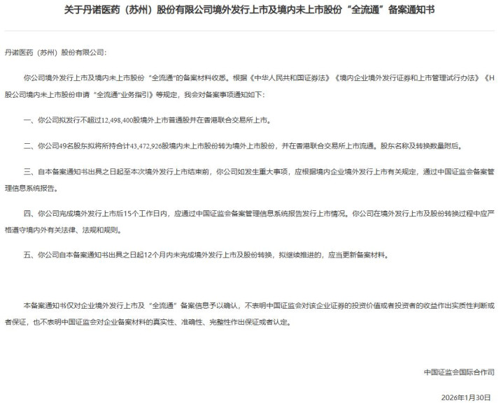 2026年2月3日,丹诺医药向港交所递交招股书,申请香港主板上市。该公司曾于2025年7月30日向港交所递交过上市申请。