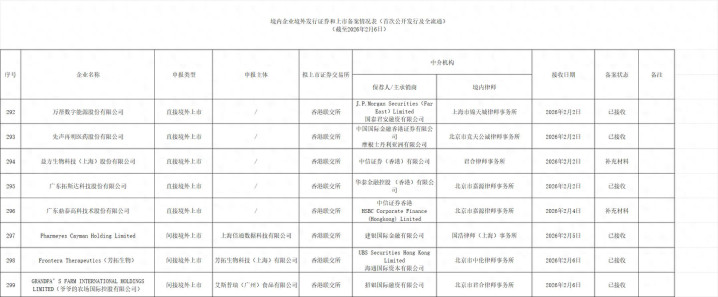 2026年2月6日,中国证监会更新了境内企业境外发行证券和上市备案情况表(截至2026年2月6日),共299家企业备案中。